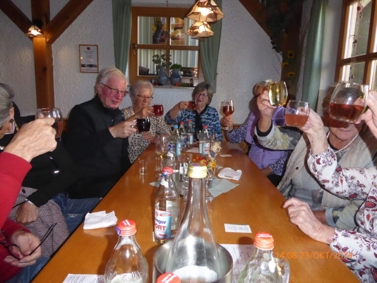Der große vollbesetzte Bus brachte uns zum Besen. Es erwartete uns ein großzügiges Mittagsbüffet. Die angebotenen Weine mundeten sehr gut. Die dargebrachten „Besenliedle“ sorgten für