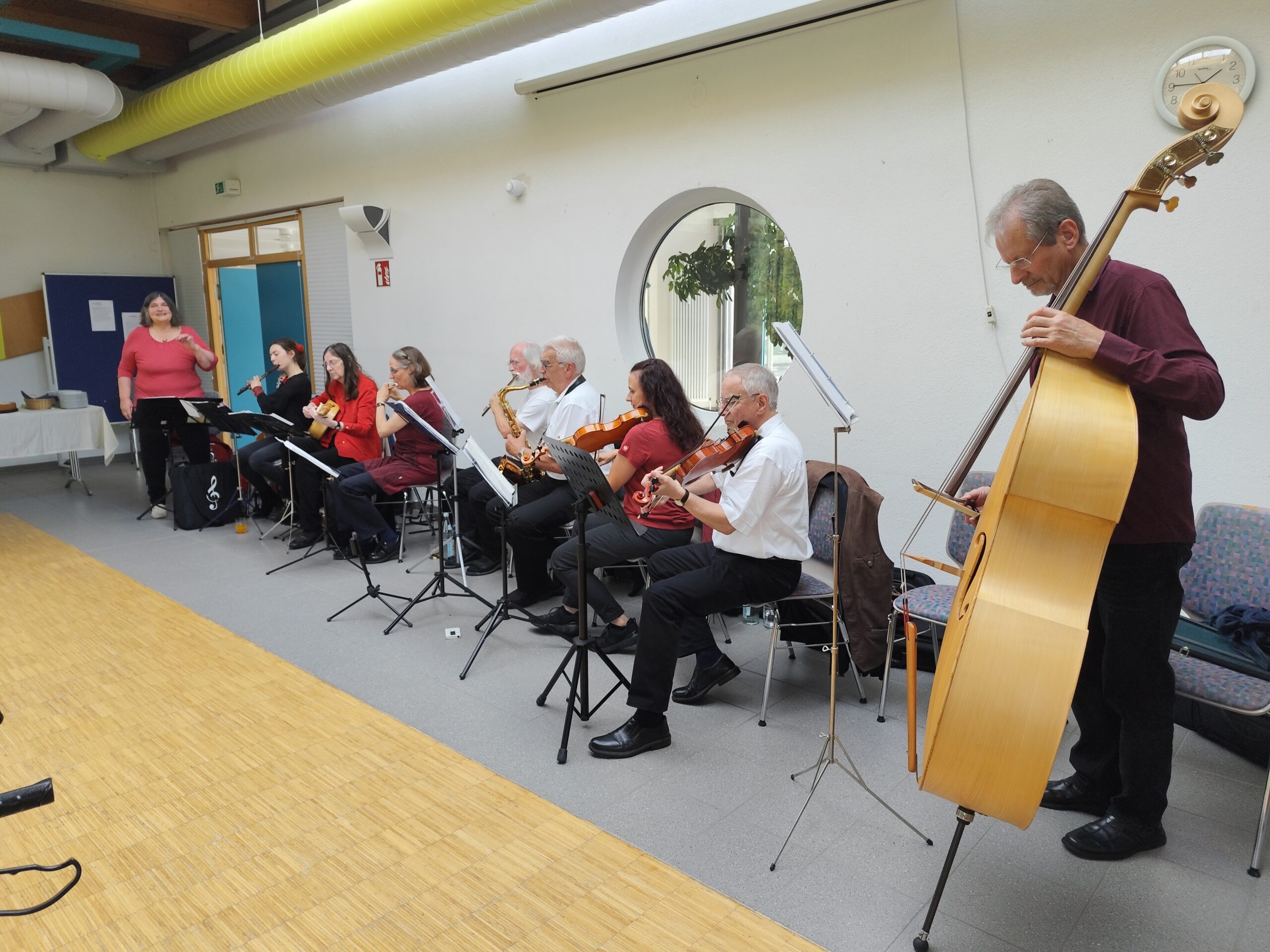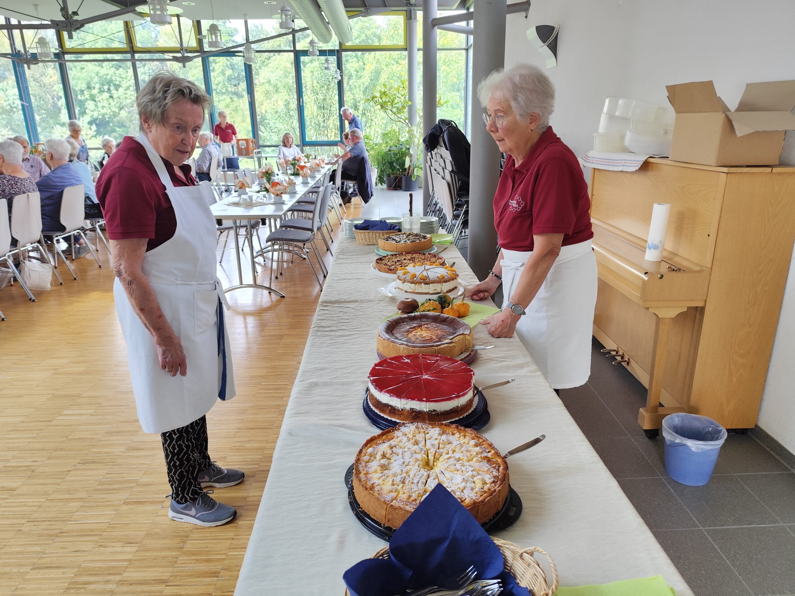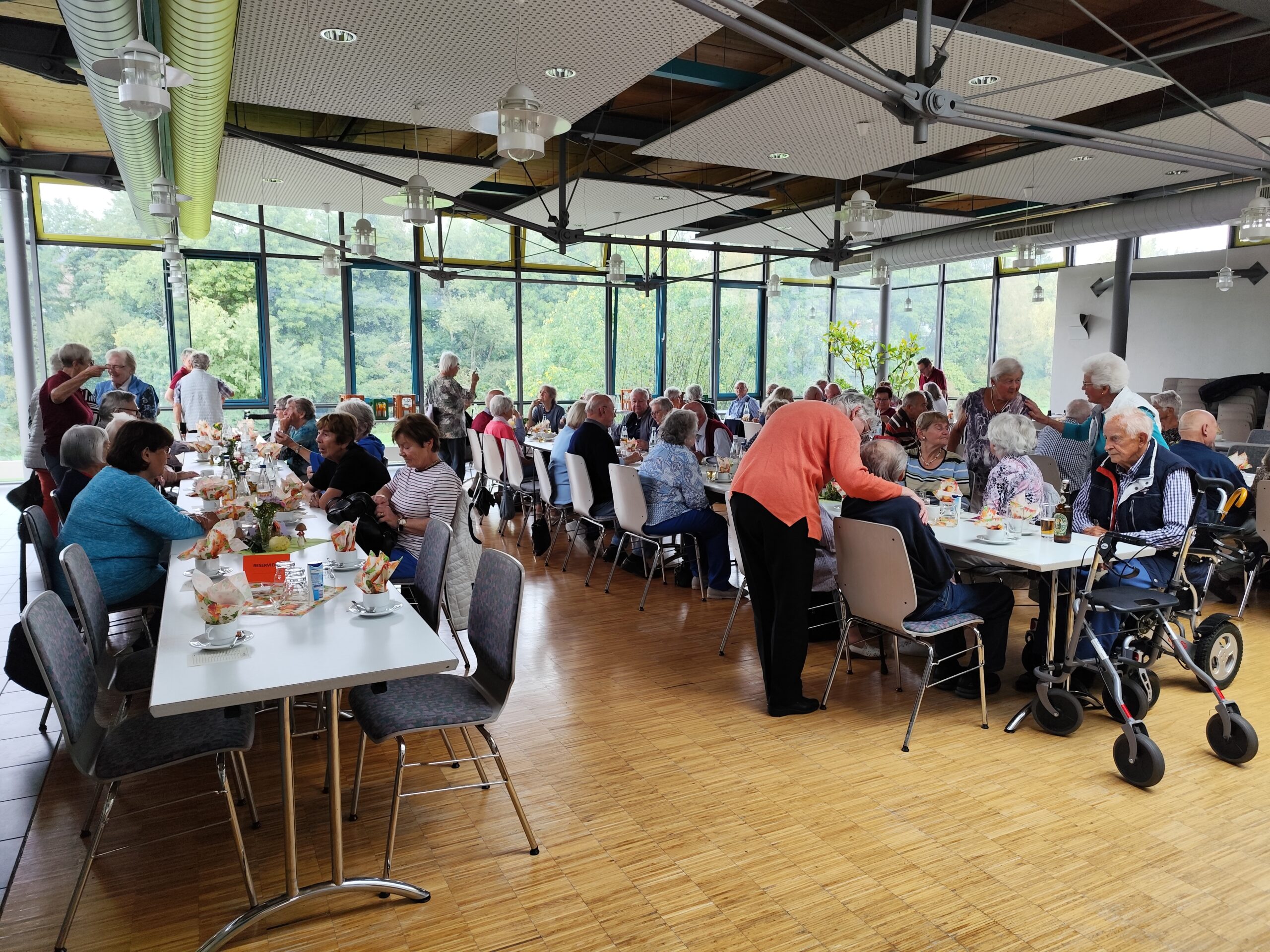 Bereits ab 13.00 Uhr belegten die zahlreich erschienenen Gäste die Plätze. Pünktlich um 14.00 eröffnete der Vorsitzende, Roland Schlichenmaier, das Fest. Er dankte den Helferinnen und Helfern, die den Saal festlich dekorierten, die Tische eindeckten und Getränke bereitstellten. Er dankte auch den Mitgliedern die süße Kuchen – einer schöner wie der andere – gebacken hatten und kostenlos zur Verfügung stellten. Erstmals wurden die Salz- und Zwiebelkuchen nicht von den Helferinnen gebacken, sondern wurden von der Seemühle Unterweissach geliefert. Auch den Mitarbeitern von der Mühle sagte er herzlichen Dank für die leckeren Kuchen. Logischerweise entstanden gegenüber den letzten Jahren Mehrkosten, trotzdem wurden die Kosten für die Salz- und Zwiebelkuchen wieder vom Seniorenclub übernommen und an die Besucher kostenlos ausgegeben. Wer wollte, konnte als ein kleines Dankeschön, in die Sparbüchsen am Ausgang, ein „Backschisch“ einwerfen. Die neun Althütter Stubenmusiker unter der Leitung von Frau Isolde Heim, spielten nun Volkslieder, sowie alte Schlager zum Mitsingen. Die dargebotene Musik kam bei den Zuhörern gut an. RS verwies noch auf die Besenausfahrt am 23. Oktober zu der „Besenhex“ in Tiefenbach. Weil nur noch wenige freie Plätze vorhanden sind, empfahl er sich gleich heute noch anzumelden. Danach eröffnete er das Fest und wünschte einen guten Appetit. Den Stubenmusikern konnte man nun eine Stunde lang lauschen, sich trotzdem noch gut unterhalten und die Kuchen genießen.